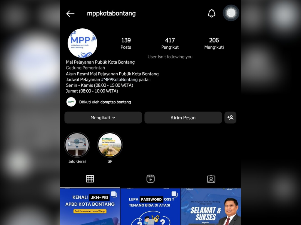HISTORIS.id – Dinas Penanaman Modal dan Pelayanan Terpadu Satu Pintu (DPMPTSP) Kota Bontang kembali mengaktifkan akun Instagram Mal Pelayanan Publik (MPP) dan berhasil menarik perhatian warga. Dalam waktu singkat, kunjungan akun tersebut meroket hingga menyentuh 25,4 ribu kali setelah dilakukan penataan ulang oleh tim humas instansi tersebut.